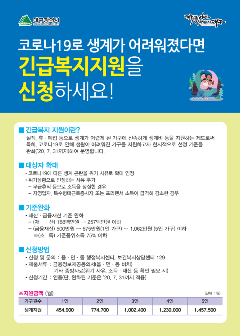 대구시는 코로나19로 인해 어려움을 겪는 가구를 지원하기위해
