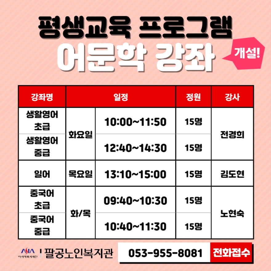 어문학 프로그램 개설!! 접수 및 등록 안내